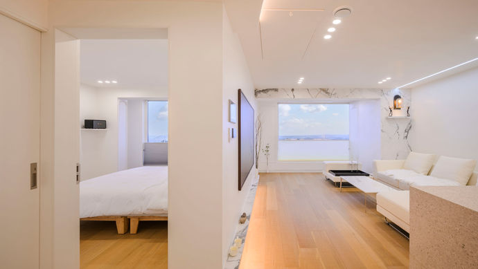 거실의 전창에서는 푸른바다의 풍경을 감상할 수 있습니다.